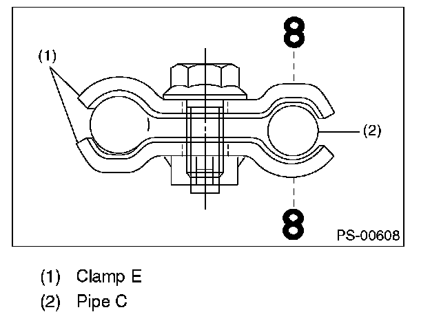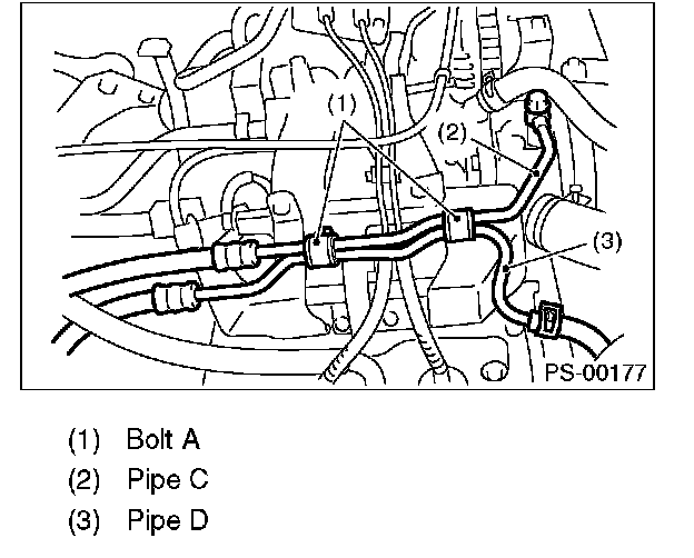 1. Temporarily tighten the two bolts fixing pipe C and D. (bolt A)