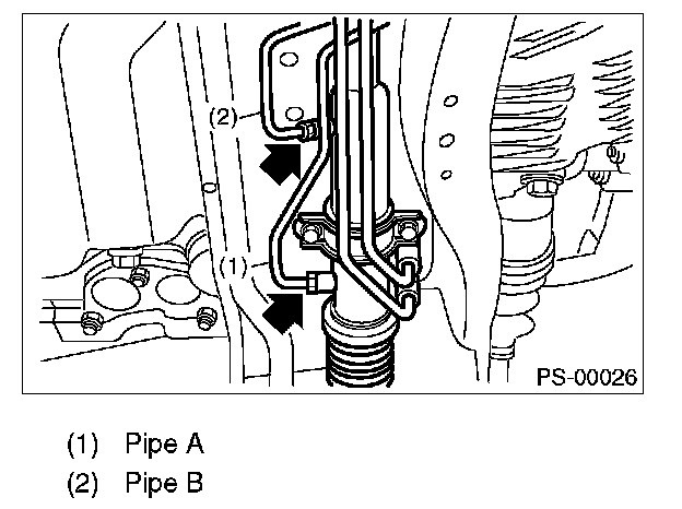 6. Connect the pipes A and B to four pipe joints of gearbox assembly. Connect the upper pipe B first, and lower pipe A second.