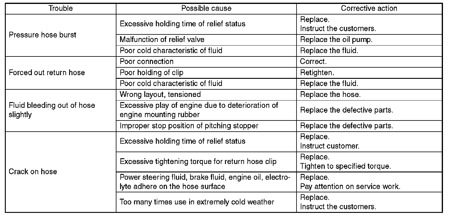 Since the resistances for heat or low temperature brittleness are gradually declining according to time accumulation of hot or cold conditions for the hoses and their service lives are shortening accordingly, it is necessary to perform the careful inspection frequently when the vehicle is used in hot weather areas, cold weather area and a driving condition in which many steering operations are required in short time.