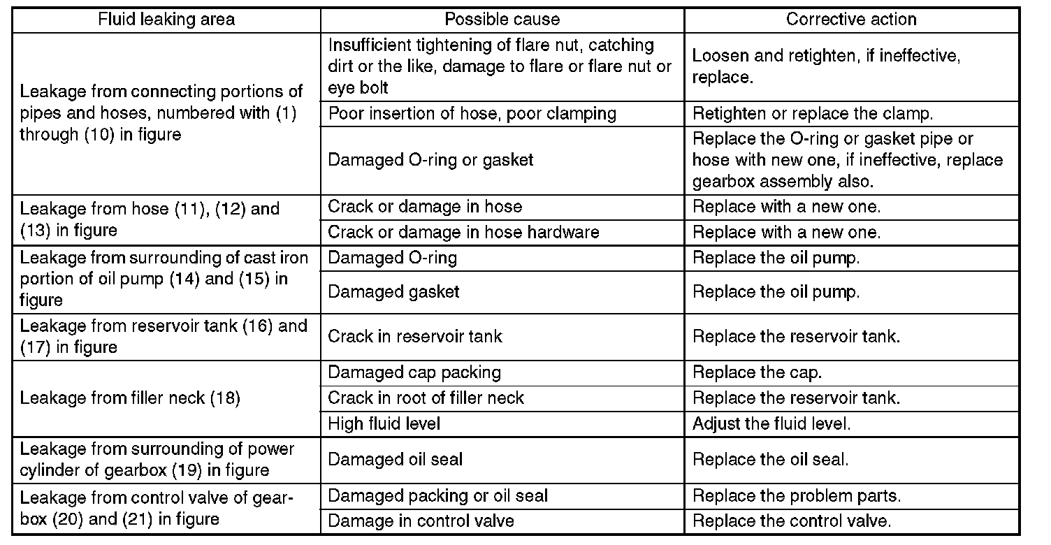 NOTE: It is likely that although one judges fluid leakage, there is actually no leakage. This is because the fluid spilt during the last maintenance was not completely wiped off. Be sure to wipe off spilt fluid thoroughly after maintenance.