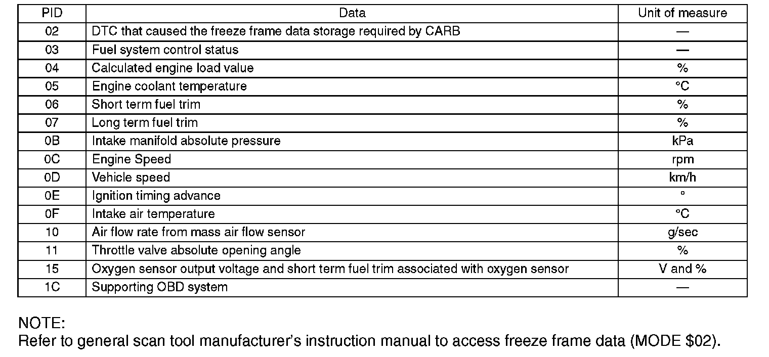 2. MODE $02: Powertrain freeze frame data