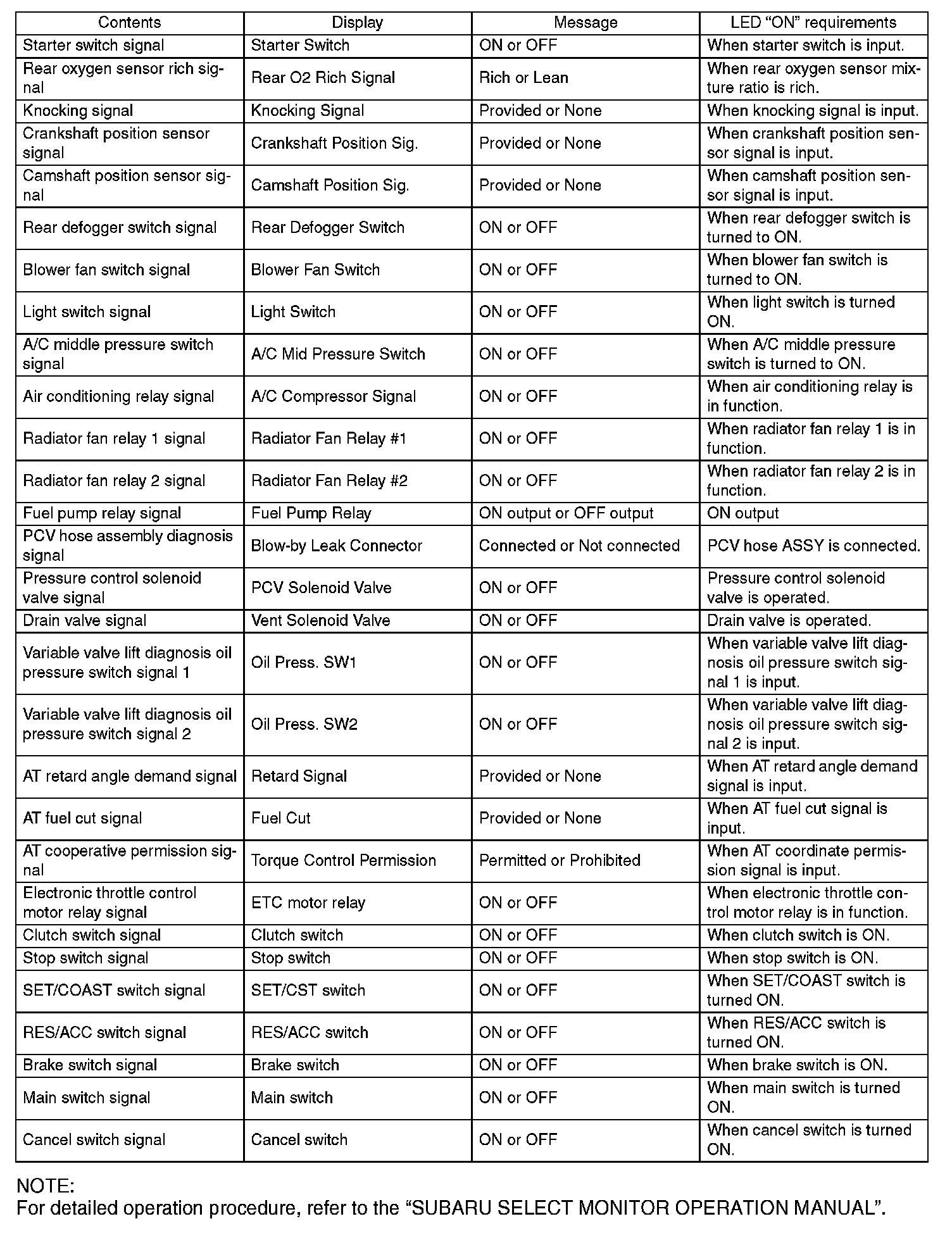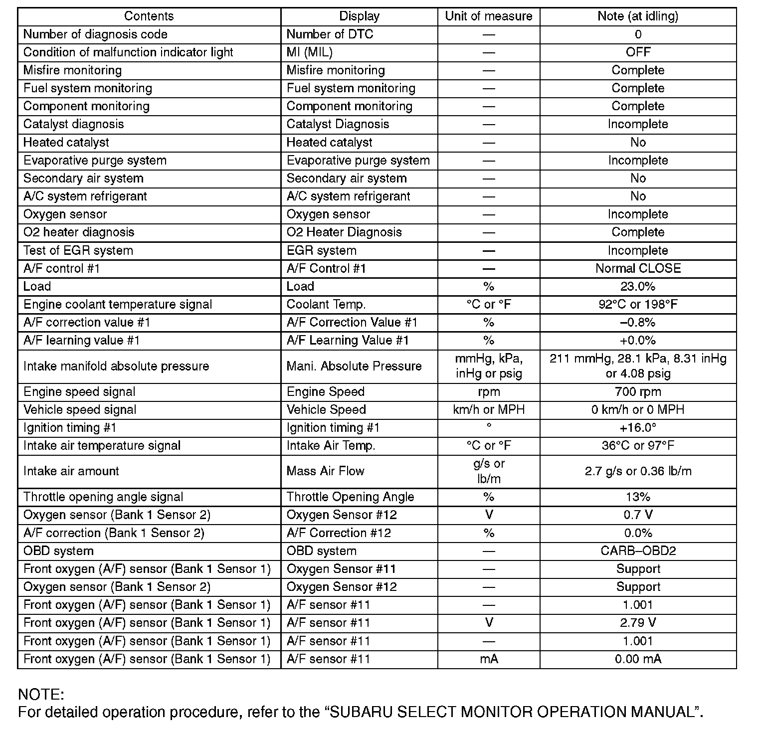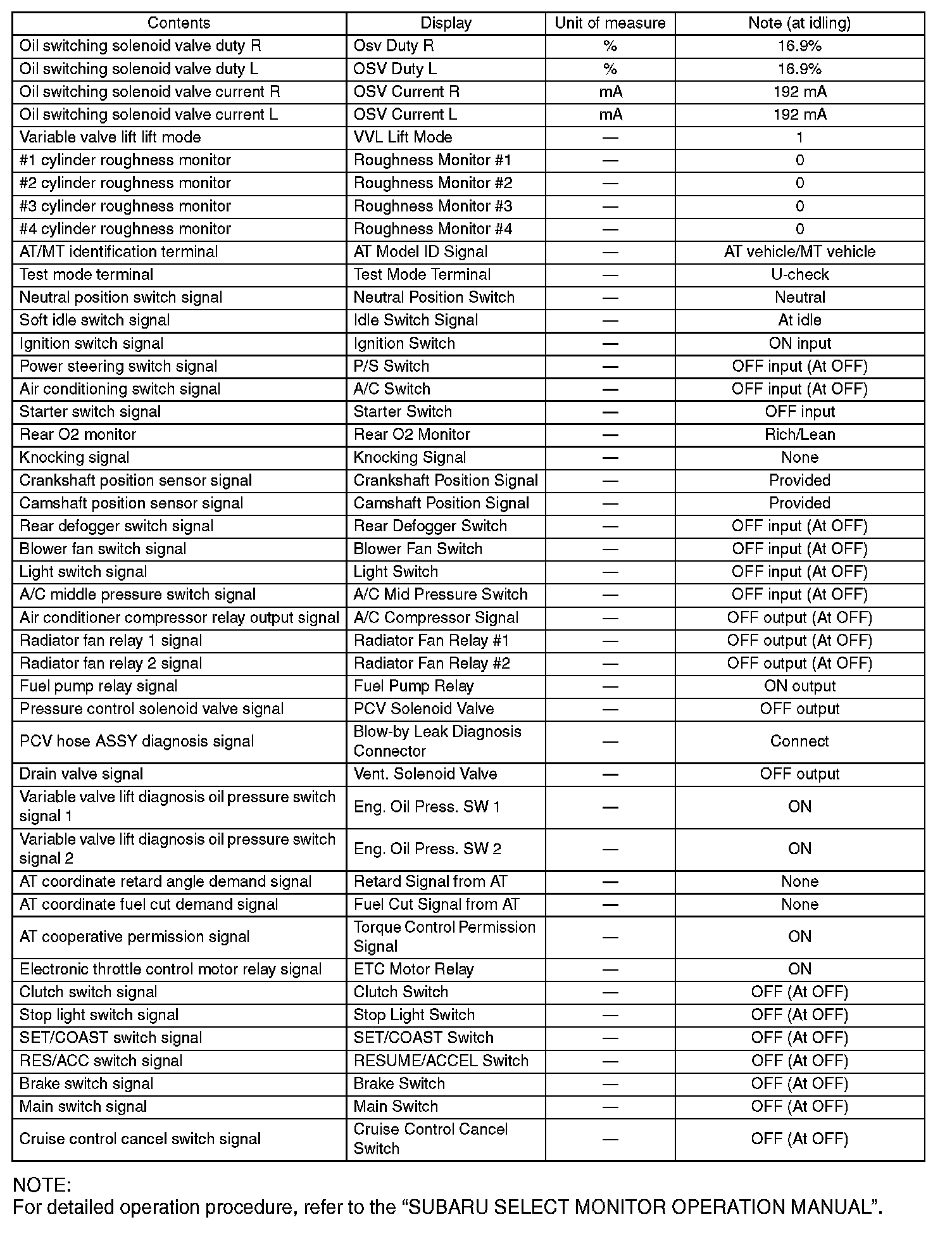 NOTE: For detailed operation procedure, refer to the "SUBARU SELECT MONITOR OPERATION MANUAL".