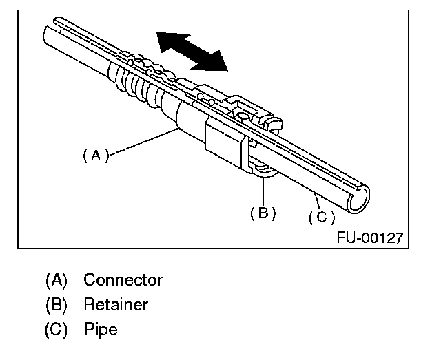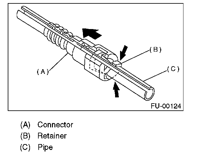 1. Disconnect the quick connector on the fuel delivery line by pushing the ST in the direction of the arrow.