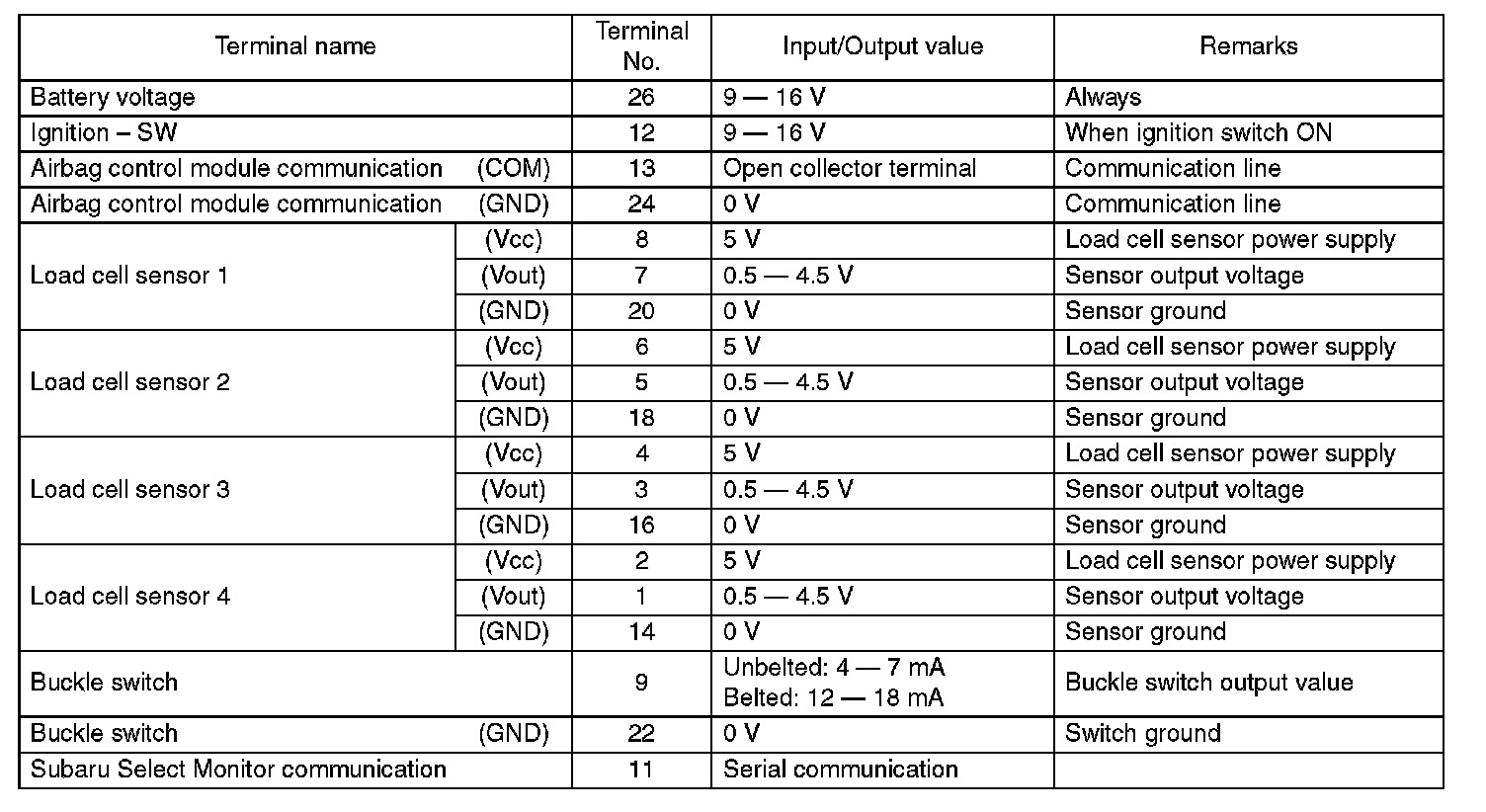 CAUTION: Never disassemble or disconnect the control module, load cell sensor or coupling harness, since each component of occupant detection system is assembled as seat frame assembly. (Disconnection from body harness connector, and disconnection of side airbag and buckle switch are OK.)