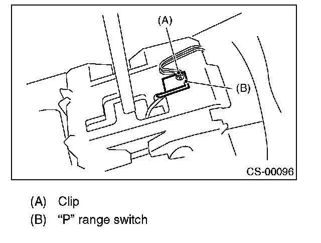 9. Remove the clip without damaging the pin and remove the "P" range switch.