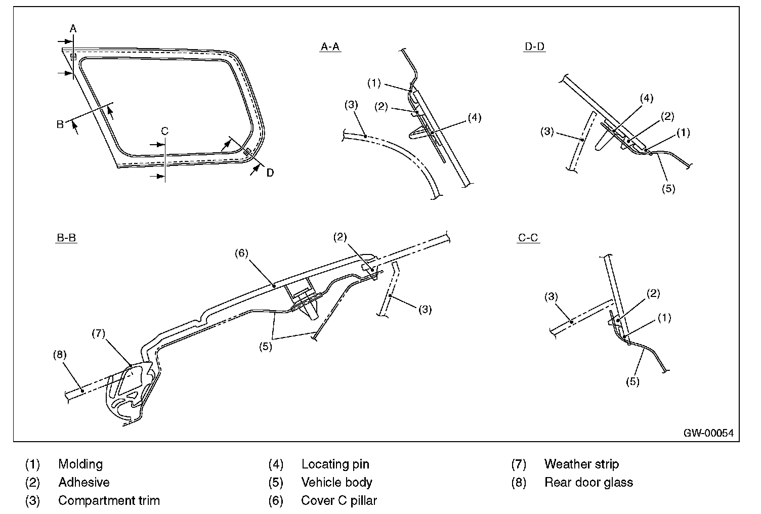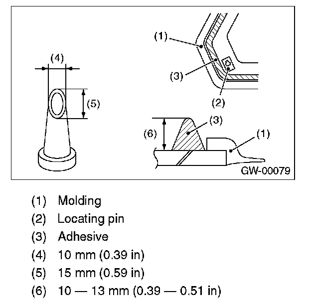 - For minimum drying time and vehicle standing time before driving after bonding, follow instructions or instruction manual from the adhesive manufacturer.