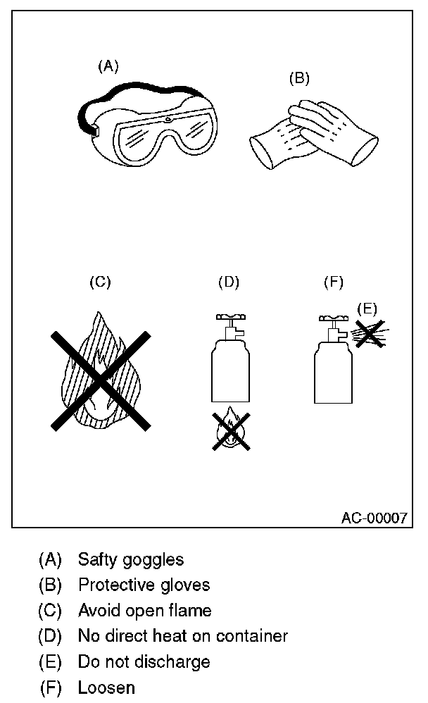 - Do not drop or impact a service can. (Observe the precautions and operation procedure described on the refrigerant can.)