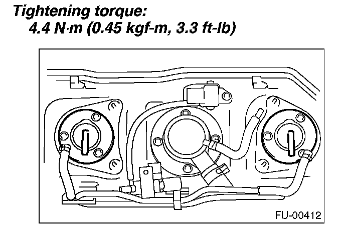 3. Move the clip and disconnect the evaporation hose from fuel cut valve.