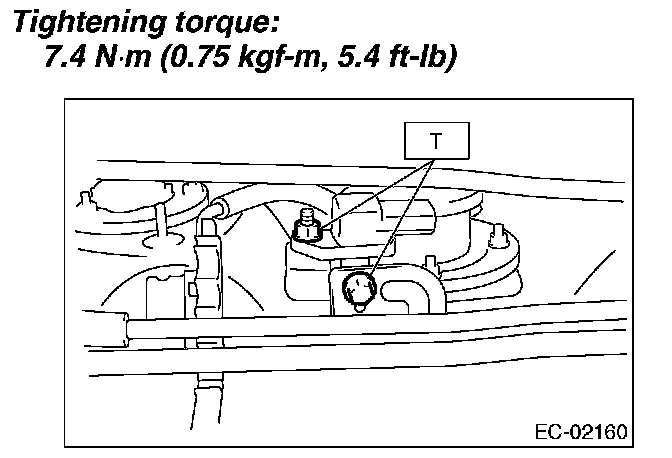 5. Remove the bolt and nut which hold the fuel tank pressure sensor onto the bracket.