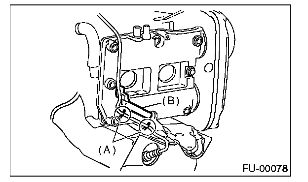 6. Connect the engine harness to the bracket (B) using clips (A).