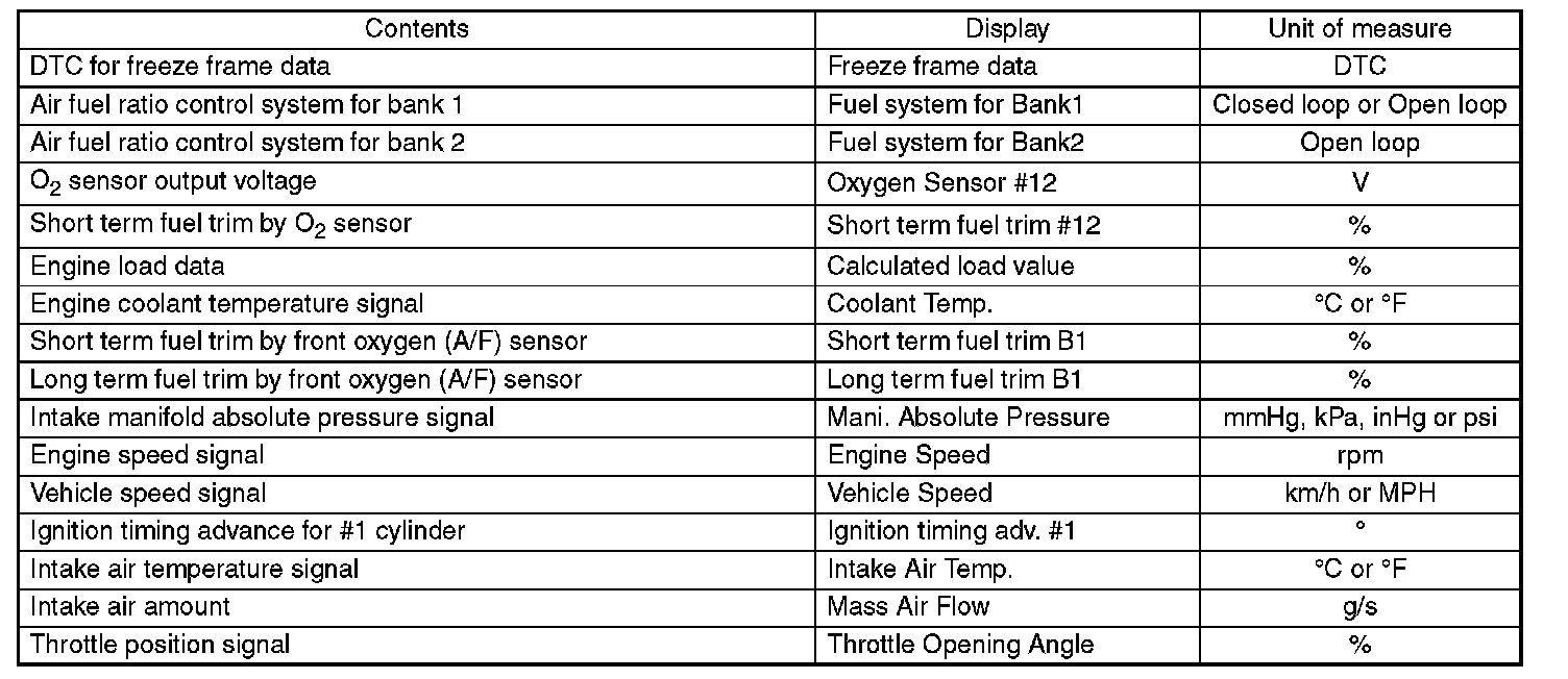 READ FREEZE FRAME DATA FOR ENGINE. (OBD MODE)