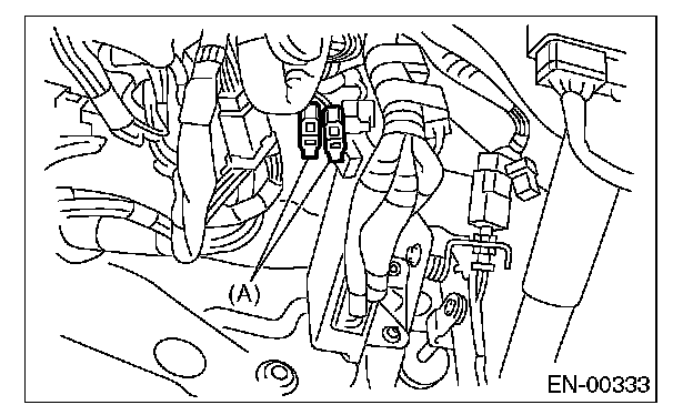 6. Connect the test mode connector (A) at the lower portion of instrument panel (on the driver's side).
