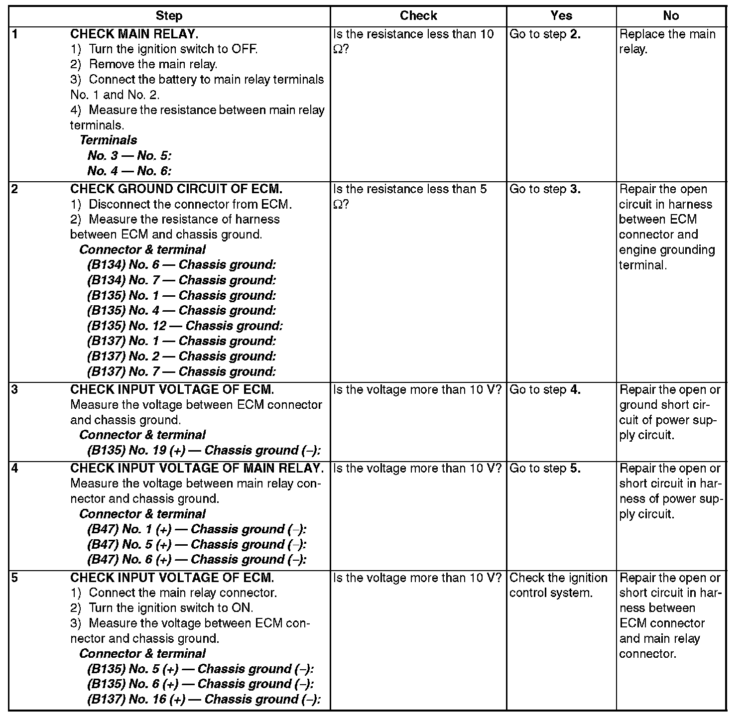 Check Power Supply and Ground Line of Engine Control Module (ECM)