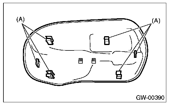 2. Press-in the upper side clips (A) from inside of door mirror.