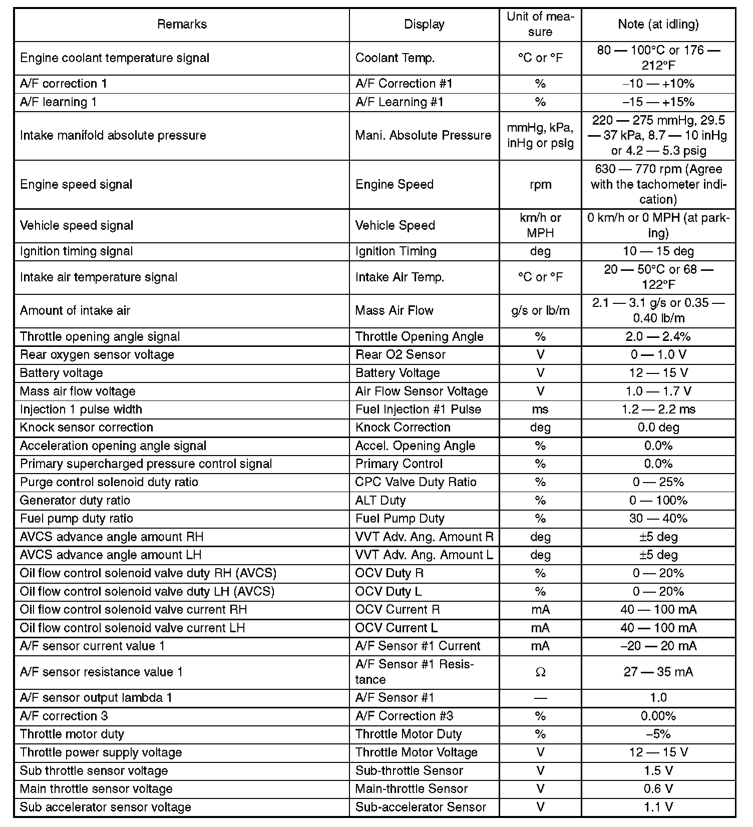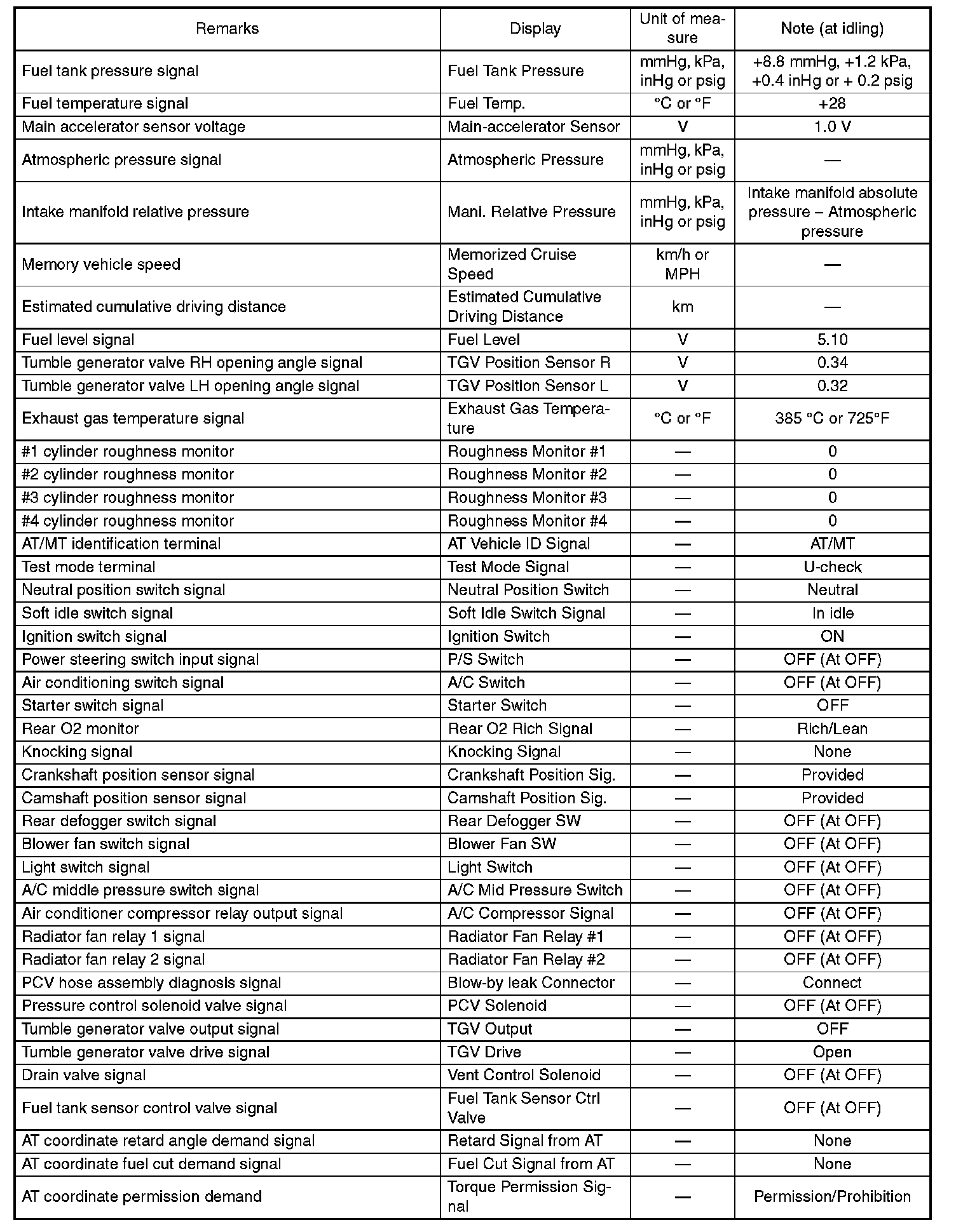 4. READ CURRENT DATA FOR ENGINE. (NORMAL MODE)