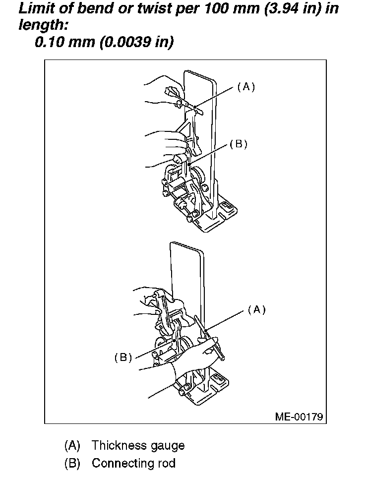 2. Check for bend or twist using a connecting rod aligner. Replace the connecting rod if the bend or twist exceeds the limit.