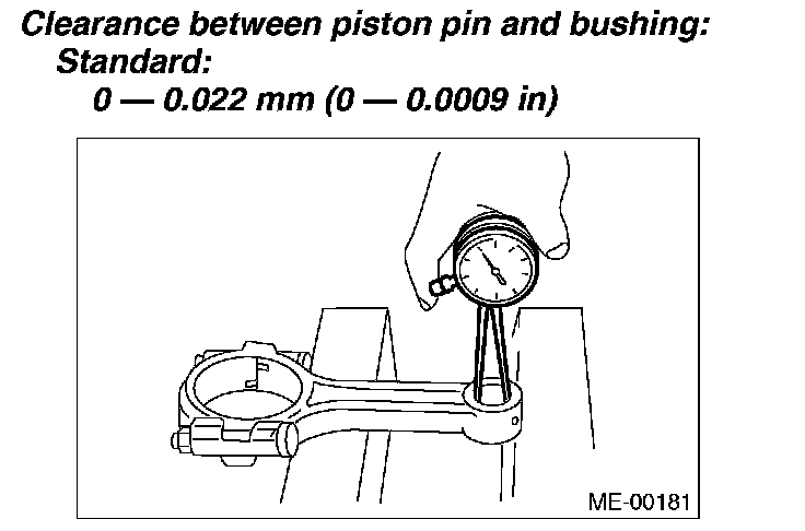 6. Inspect the bushing at connecting rod small end, and replace if worn or damaged. Also measure the piston pin clearance at connecting rod small end.