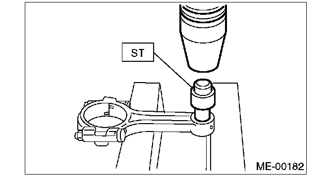 1. Remove the bushing from connecting rod with ST and press.