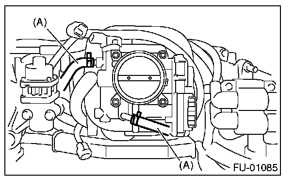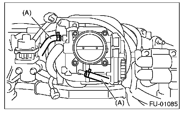 7. Disconnect the engine coolant hoses (A) from throttle body.