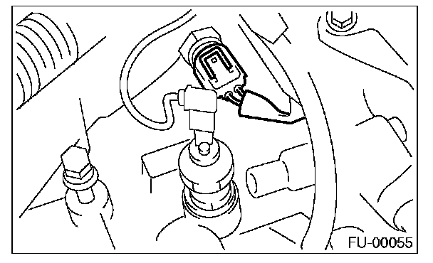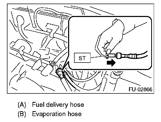 1. Disconnect the quick connector on the fuel delivery line by pushing the ST in the direction of the arrow.