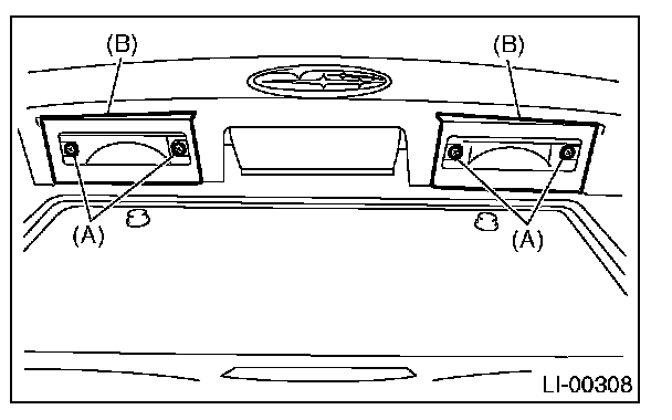 1. Remove the license plate light mounting screw (A) and then remove the lens (B).