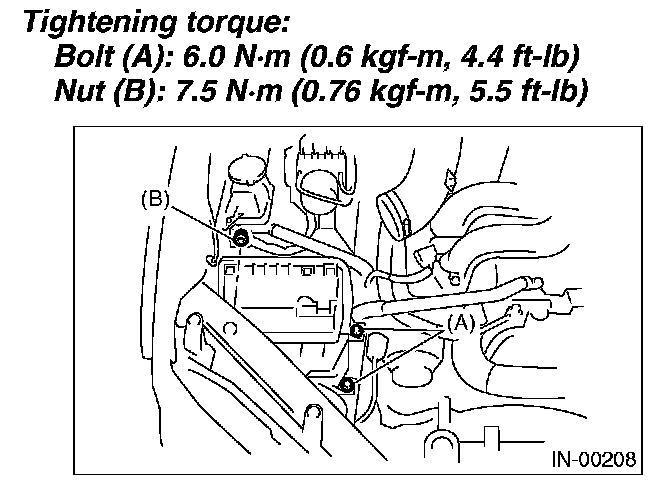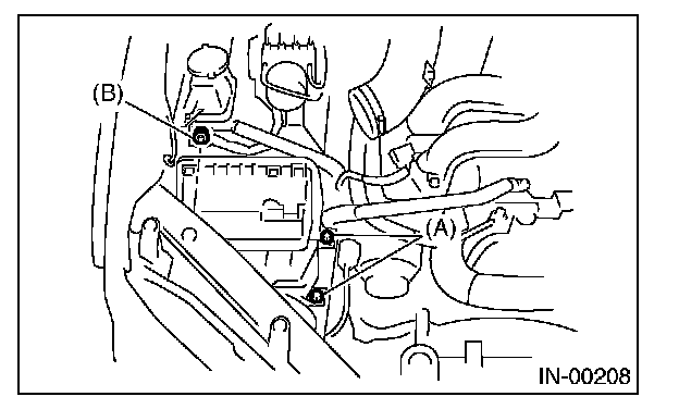 7. Remove the bolts (A) and nut (B) which secure the air cleaner case to body.