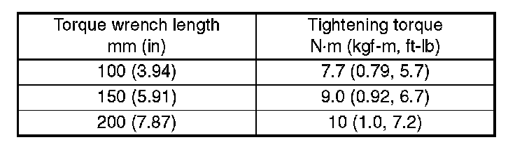 T1: 14 Nm (1.4 kgf-cm, 10.1 ft. lbs.)