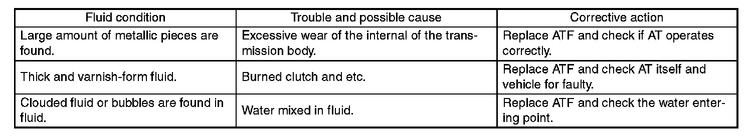 When replacing ATF, check the inside condition of the transmission body by inspecting the drained ATF.