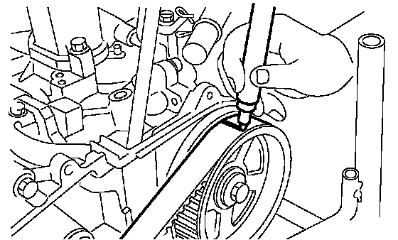 3. If the adjuster rod is not stiff and moves down, replace the automatic belt tension adjuster assembly with a new part.