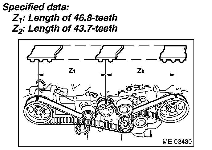 1. Check the timing belt teeth for breaks, cracks or wear. If any fault is found, replace the belt.