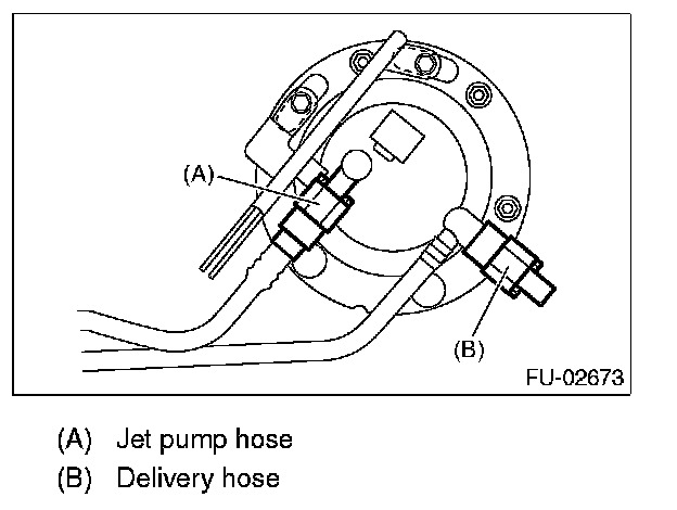5. Disconnect the quick connector, then disconnect the fuel delivery hose and jet pump hose.