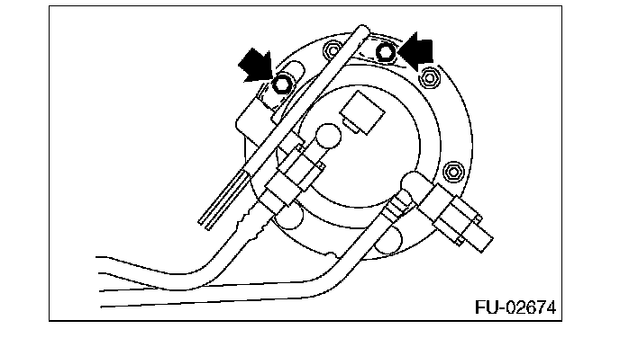 6. Remove the nuts and bolts which install fuel sub level sensor on fuel tank.