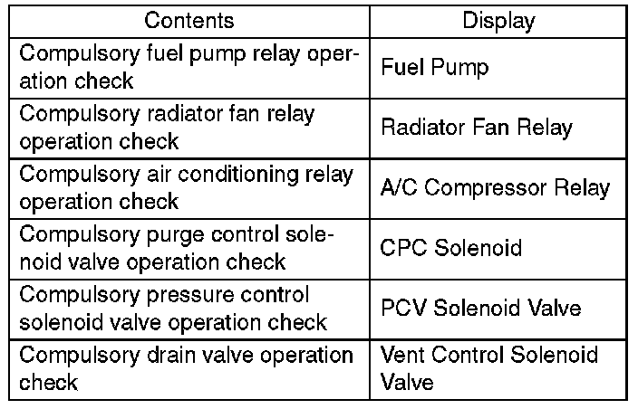 13. Pressing the [NO] key completes the compulsory operation check mode. The display will then return to the "Actuator ON/OFF Operation" screen.