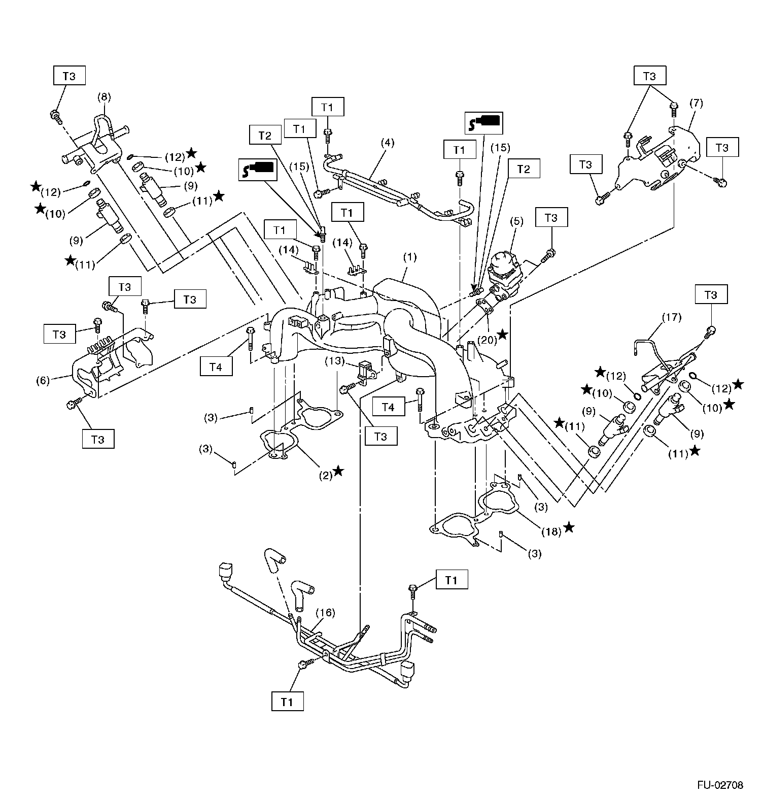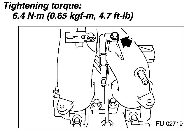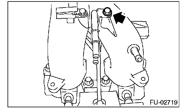 8. Remove the bolt which holds fuel injector pipe onto intake manifold.