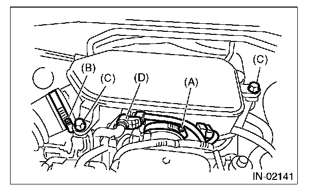 3. Remove the bolt (C) which secures air intake chamber to the stay.