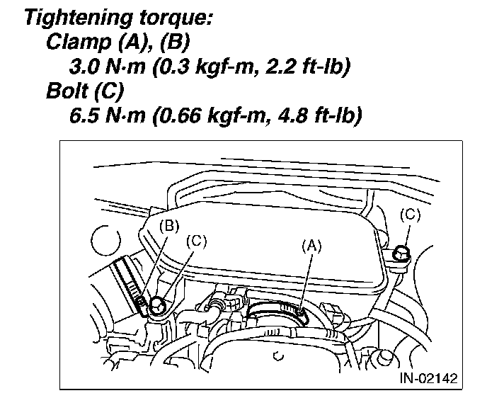 2. Loosen the clamp (B) which connects the duct to air intake chamber.