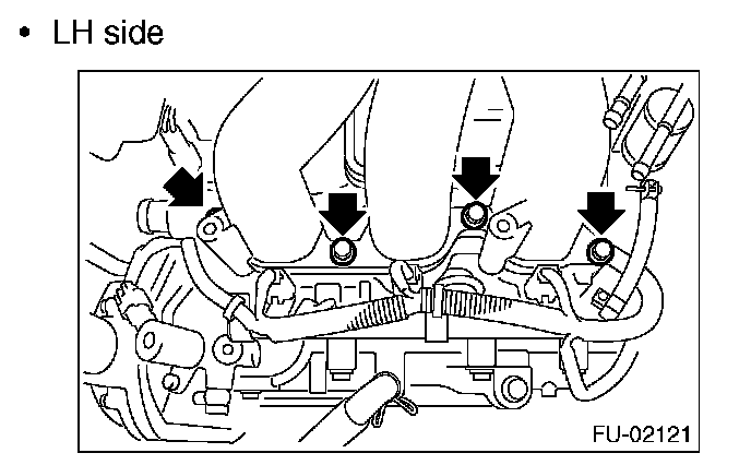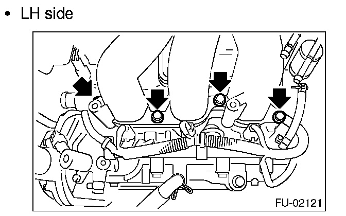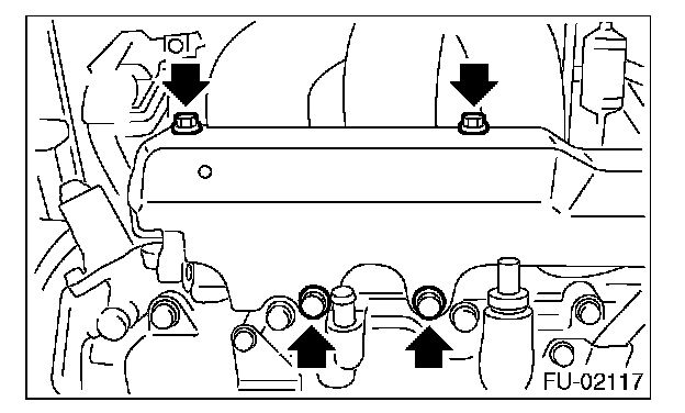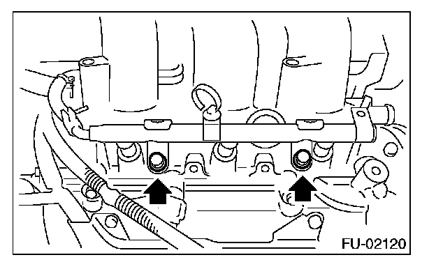 14. Remove the bolts, which hold fuel injector pipe LH onto cylinder head.