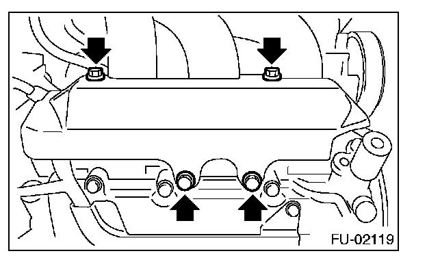 18. Remove bolts which hold intake manifold onto cylinder heads.