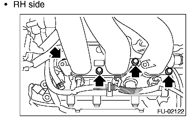 2. Install the bolts, which hold fuel injector pipe RH onto cylinder head.