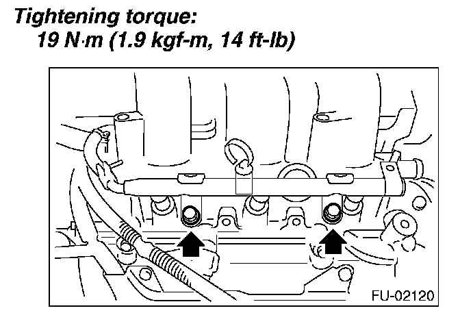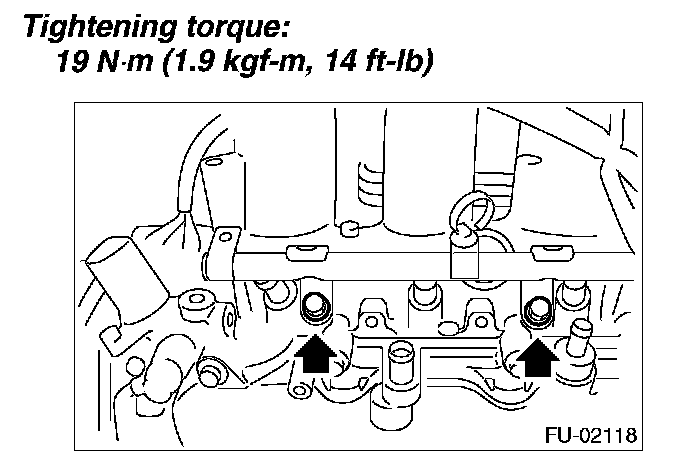 5. Install the bolts which hold fuel injector pipe LH onto cylinder head.