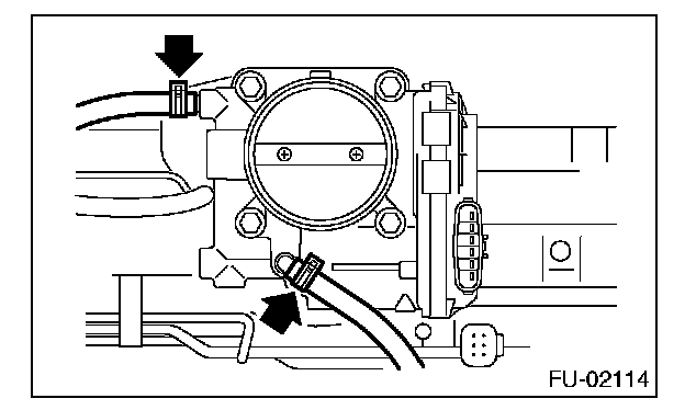 8. Disconnect the engine coolant hoses from throttle body.