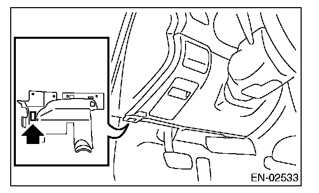 5. Connect the Subaru Select Monitor to data link connector located in the lower portion of the instrument panel (on the driver's side.)