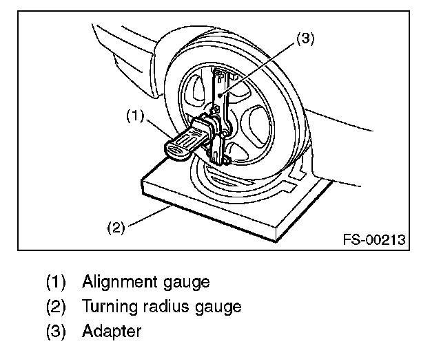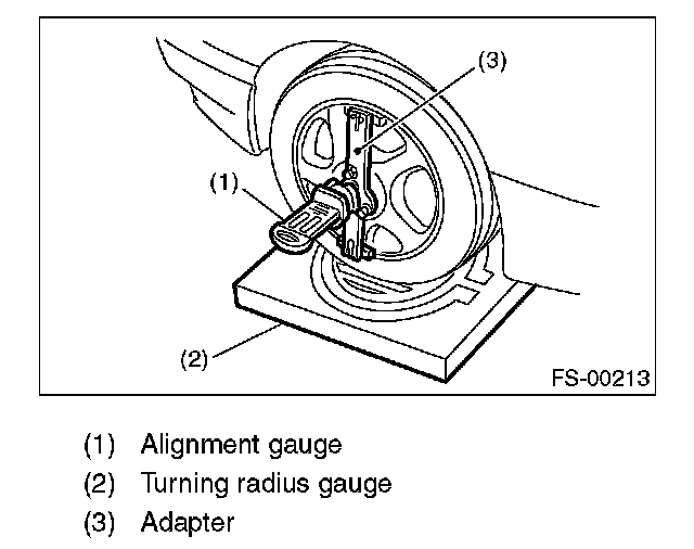 1) Place the vehicle on a turning radius gauge.
