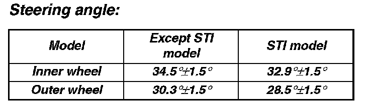 1) Make sure that the right and left steering angles are within specified value.