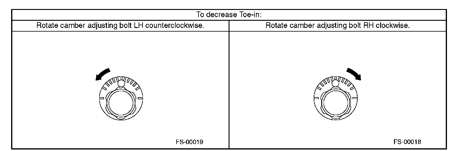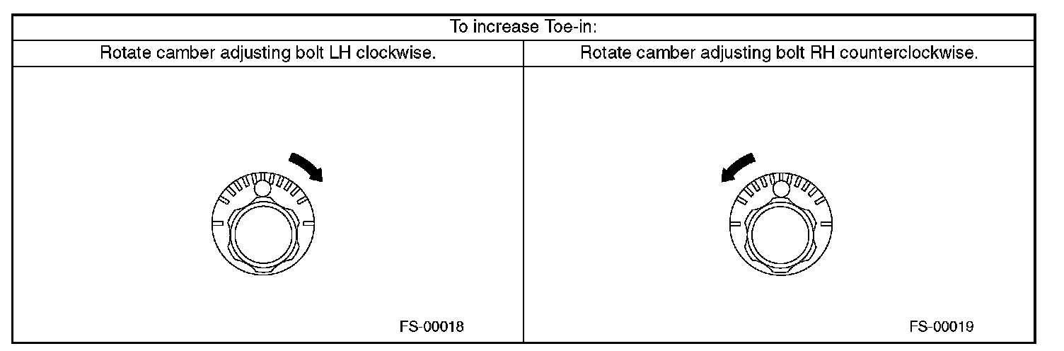 2) When one rear wheel is adjusted in a toe-in direction, adjust the other rear wheel equally in toe-out direction, in order to make thrust angle adjustment.