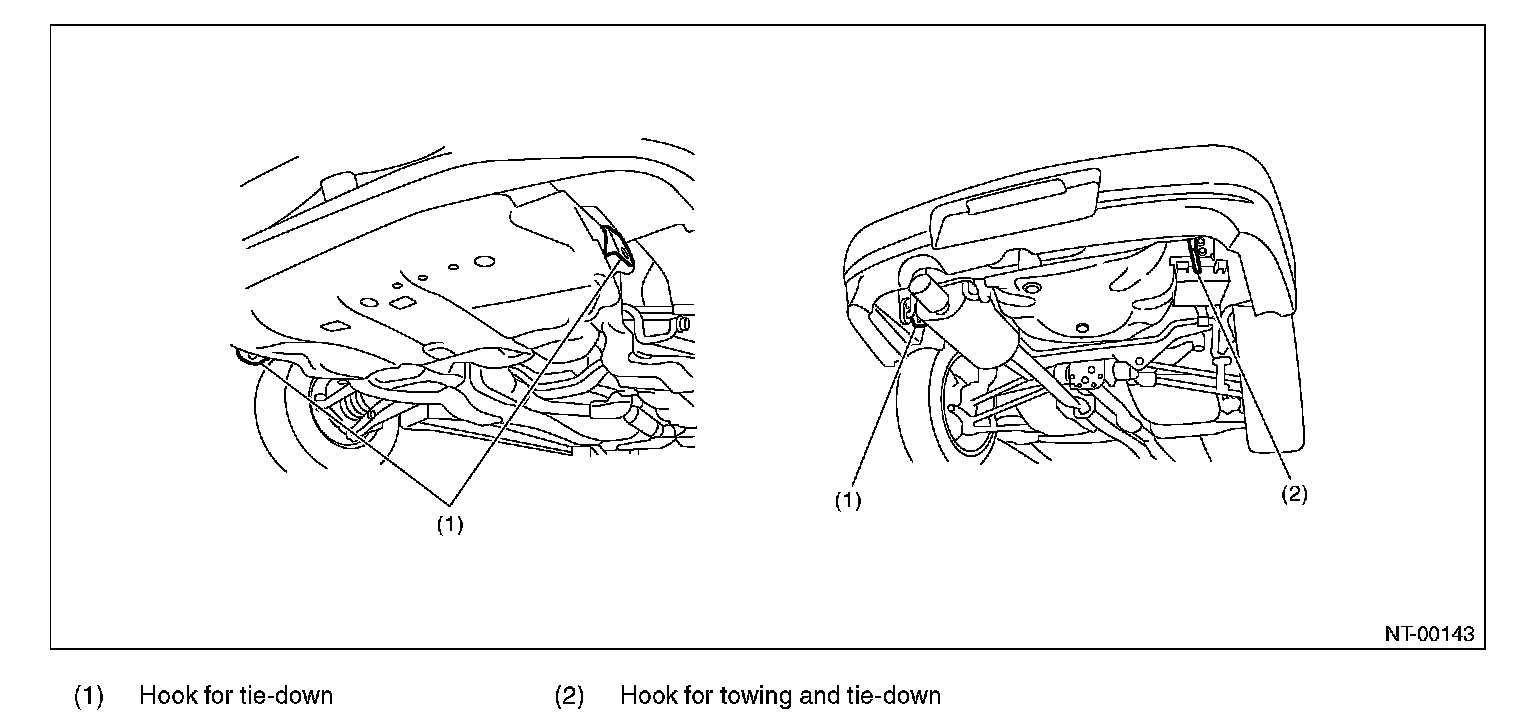 Tie downs are used when transporting vehicles and when using the chassis dynamo. Attach tie downs only to the specified points on the vehicle.