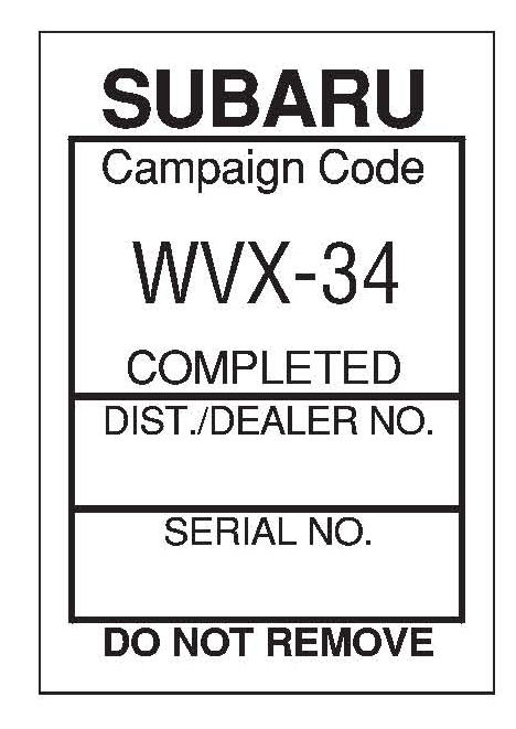 Type or print the necessary information on a Recall Identification Label The completed label should be attached to the vehicles upper radiator support