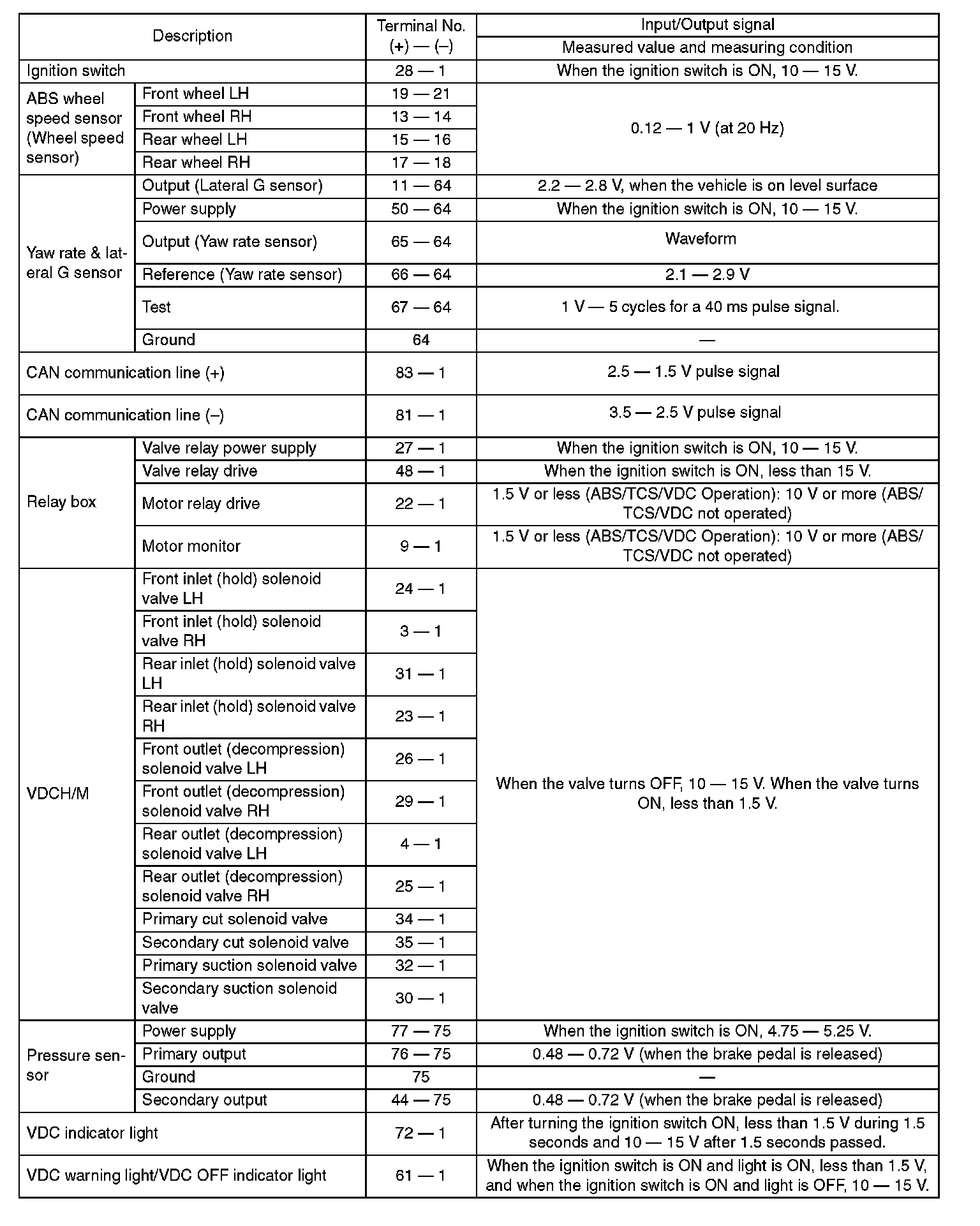 NOTE: For output waveform of ABS wheel speed sensor, refer to the "ABS DIAGNOSTICS".