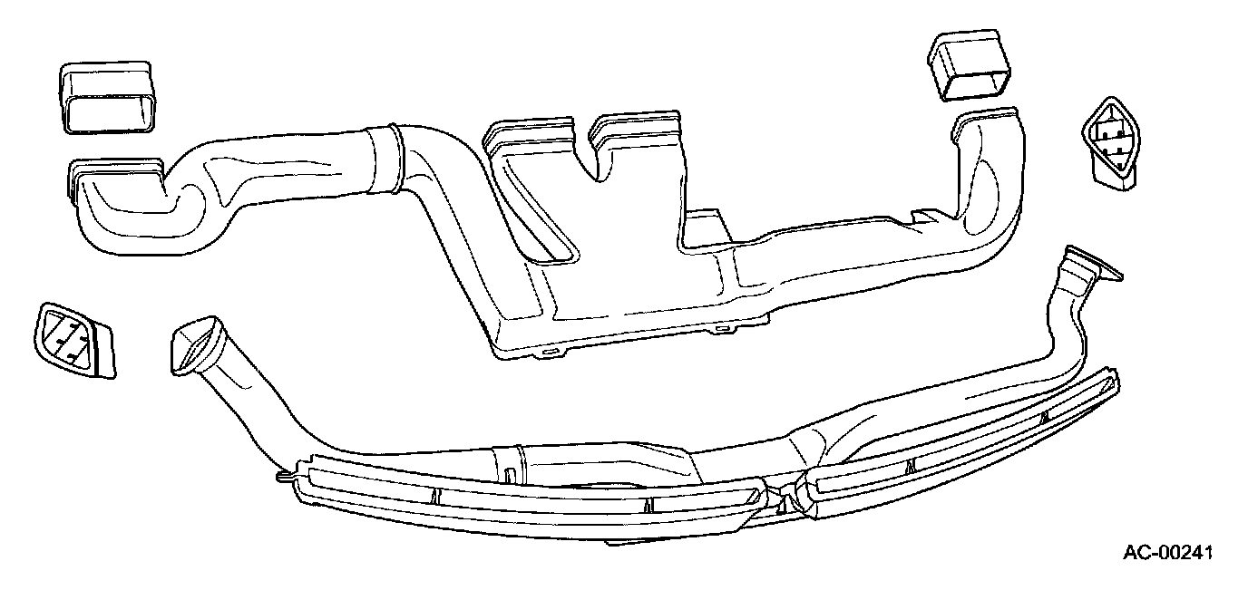 DUCTS- The ventilation duct and defroster duct are located behind the instrument panel. Both the ducts have been modified in the shape to reduce air flow resistance.