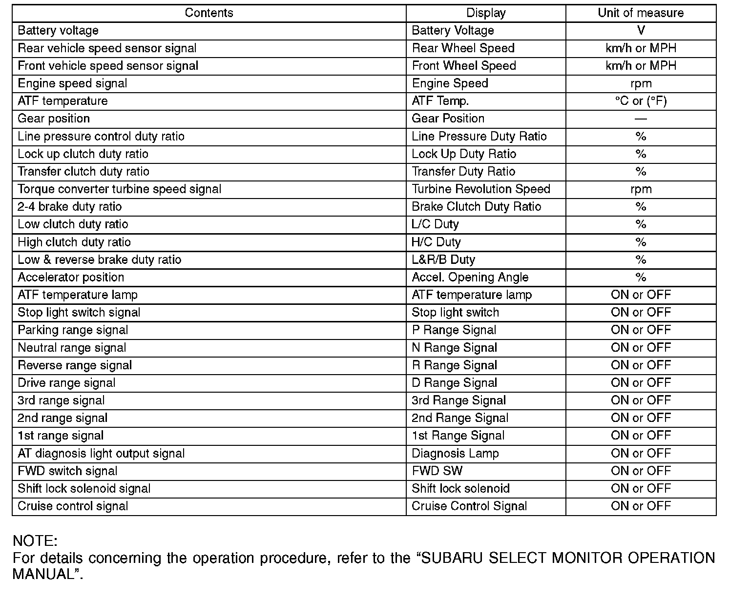 NOTE: For details concerning the operation procedure, refer to the "SUBARU SELECT MONITOR OPERATION MANUAL".